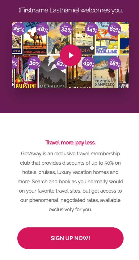 LINKS TO LIFESTYLE ONLY ENROLLMENT. Use these links to share GetAway with your prospects. These links go to a page with the video, a brief description of the product, a lead capture page and an enrollment link. This is a great follow-up tool, a pique interest tool, or a direct link for someone interested in one specific service.